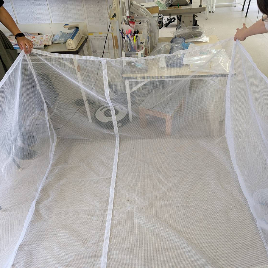 トリカルネットN-9をL字に縫製加工して袋を作りました。